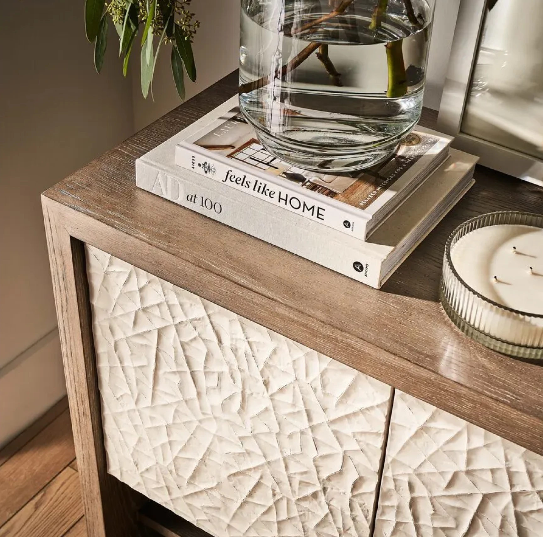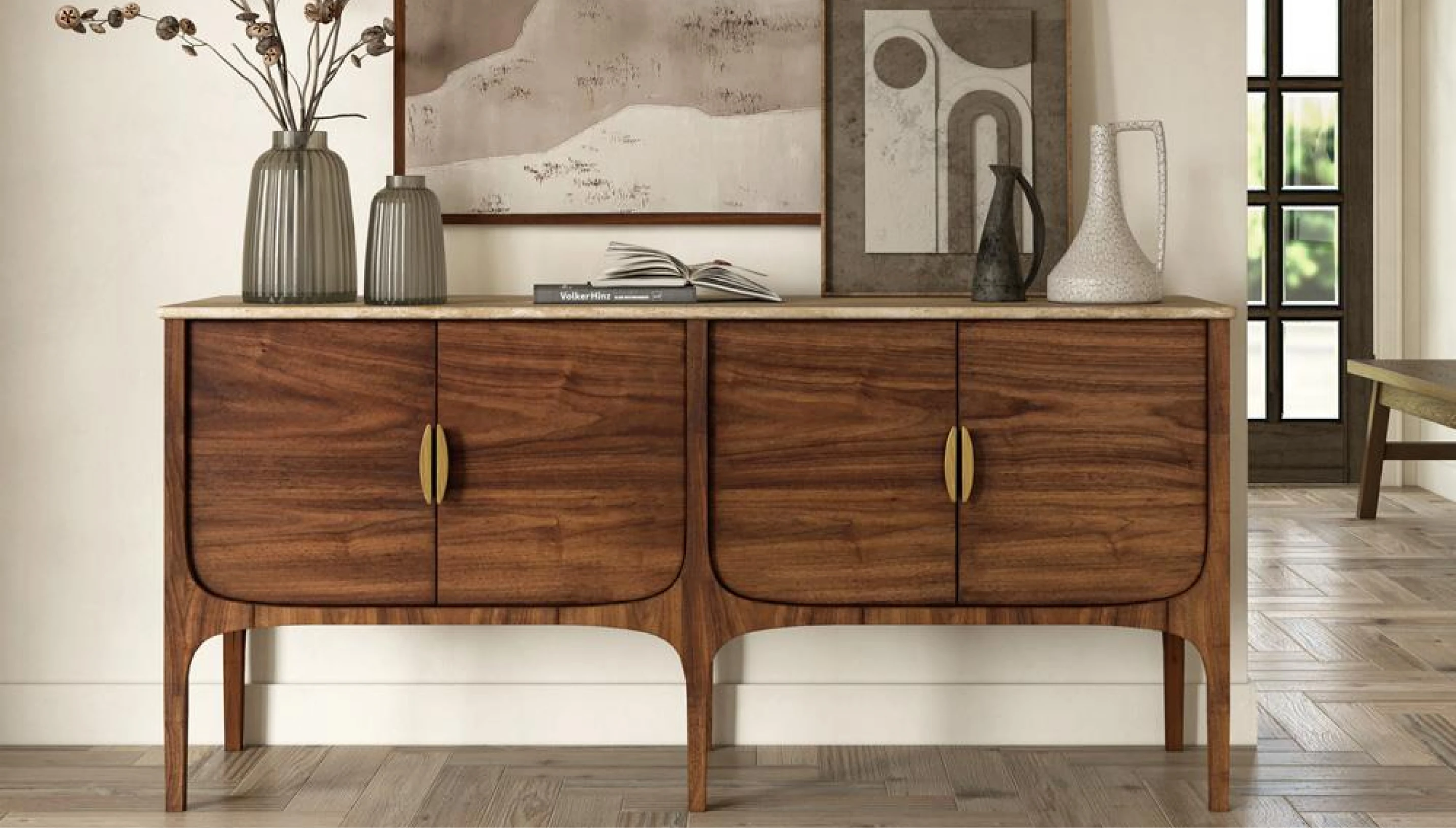 Think beyond the table. Use a sideboard, console, or bar cart as a second surface where guests can gather, pour drinks, or graze between courses. These pieces add storage, help with organization, and give your dining zone a sense of movement so no one gets stuck in one spot.