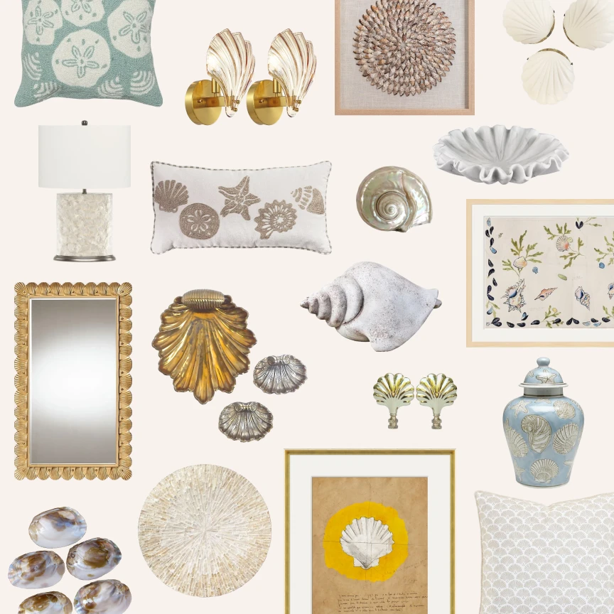 Bring breezy coastal vibes home with shell-inspired accents that feel fresh, playful, and totally on trend. From gilded mirrors and sculptural wall art to embroidered pillows and ocean-hued ceramics, these pieces channel laid-back luxury with a splash of seaside charm—perfect for summer styling and year-round coastal cool.