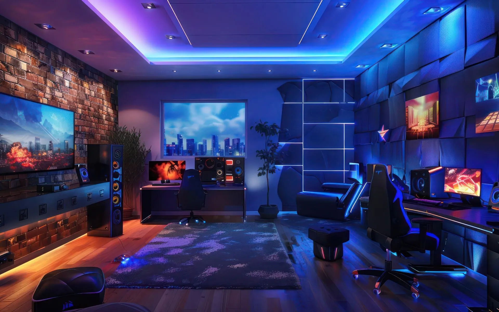 Start by picking a focal point — the big piece of furniture or gaming equipment that stands out as the star of the show. This can be your TV, gaming console, VR setup, computer monitor, or pool table.