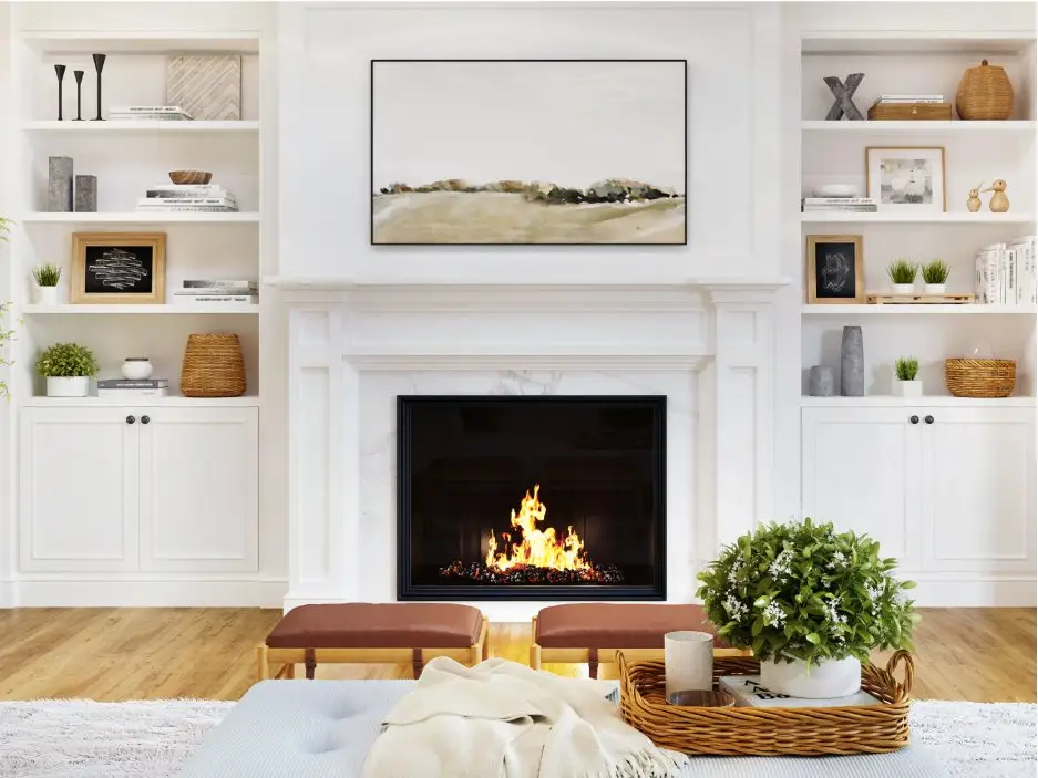 Typically a focal point faces the main entrance of a room so it can be the first thing your eye alights on when entering. Here are a few more tips for making a visually appealing focal point: