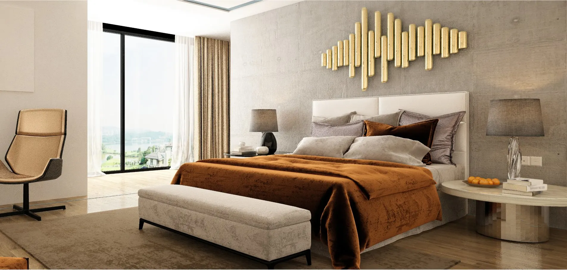 Focal points in the bedroom include a grand bed frame, a large window with a beautiful view, or a statement piece like a fireplace or light feature. Make sure the focal point is visible from the doorway as you want it to be the first thing you see when you enter the room. Be sure to balance the focal point with other elements in the room and feel free to experiment with different arrangements until you find one that you like.