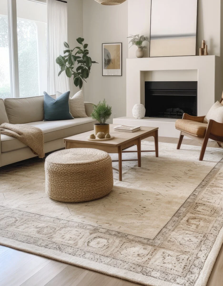 Area rugs come in many different colors and sizes to suit every aesthetic. For example, a bright floral area rug complements a bohemian or cottagecore living room. Meanwhile, a gray and white geometric area rug fits an industrial or modern space.