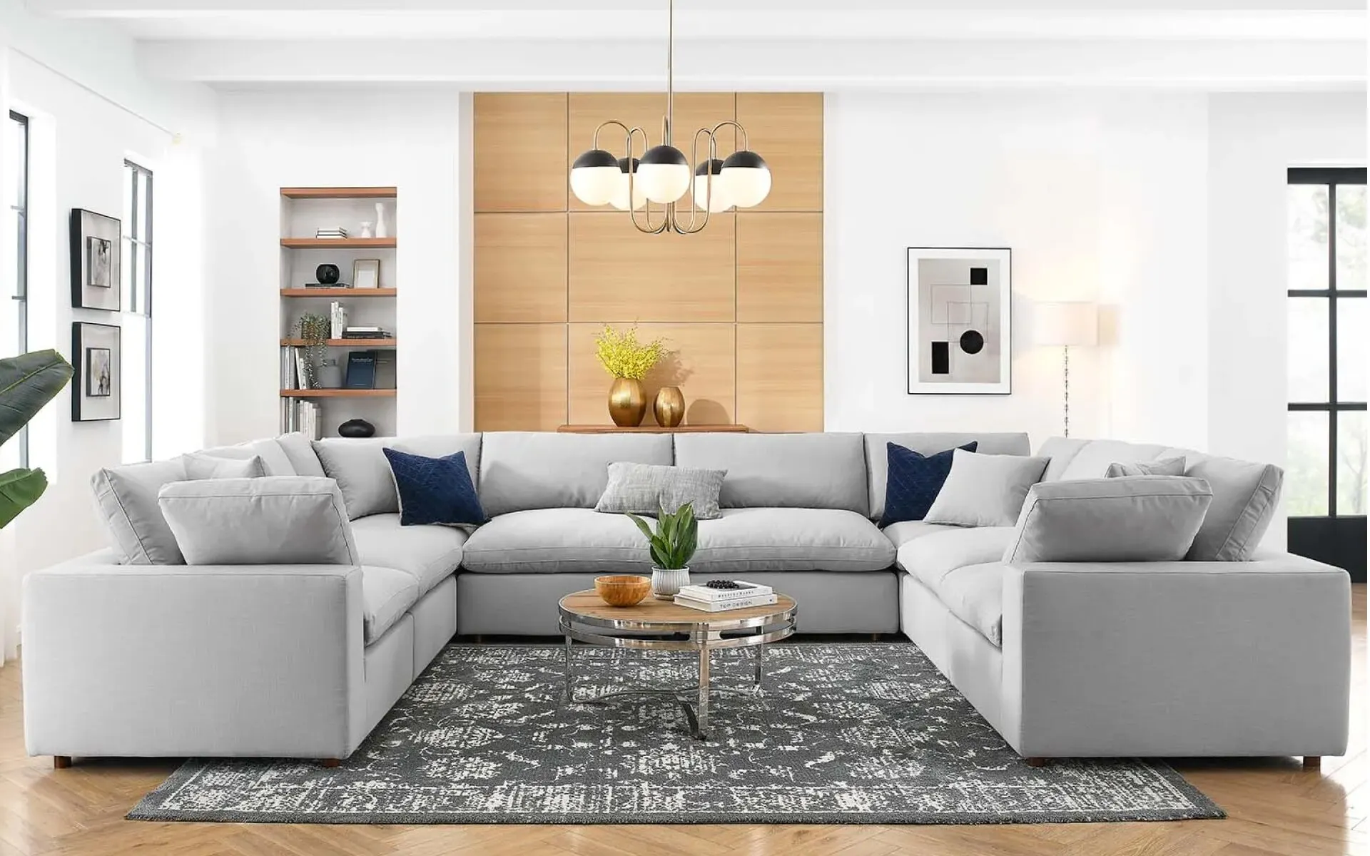 A U-shaped sectional's ample seating makes it ideal for buyers who enjoy hosting gatherings or have a larger household. The sofa's seats wrap around three sides, making it a good choice to bring people together for a movie or game night.