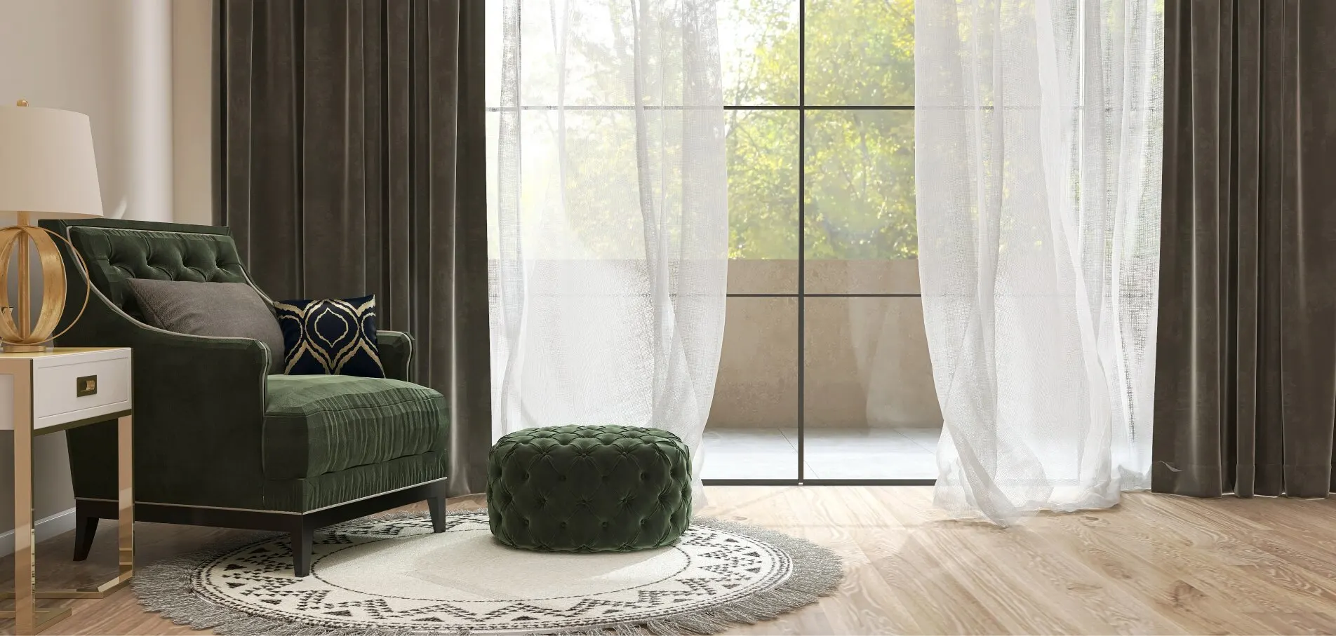 Choose to layer a thin curtain behind a thicker curtain if you want to alternate between a blackout and letting in some light without compromising on privacy.