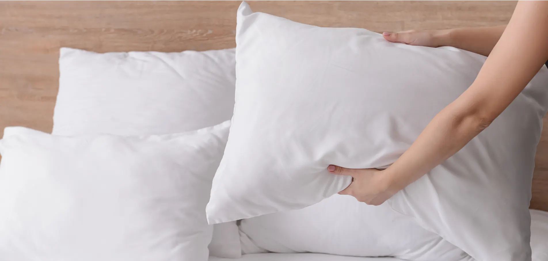 Grabbing the sides of your pillows, squeeze and pull them together in a pulse-like motion to distribute the interior filling evenly (unless it is a one-piece memory foam pillow). Fluffing any pillow with light material, like cotton or down, will be eye-catching because of its airy and lofty look.
