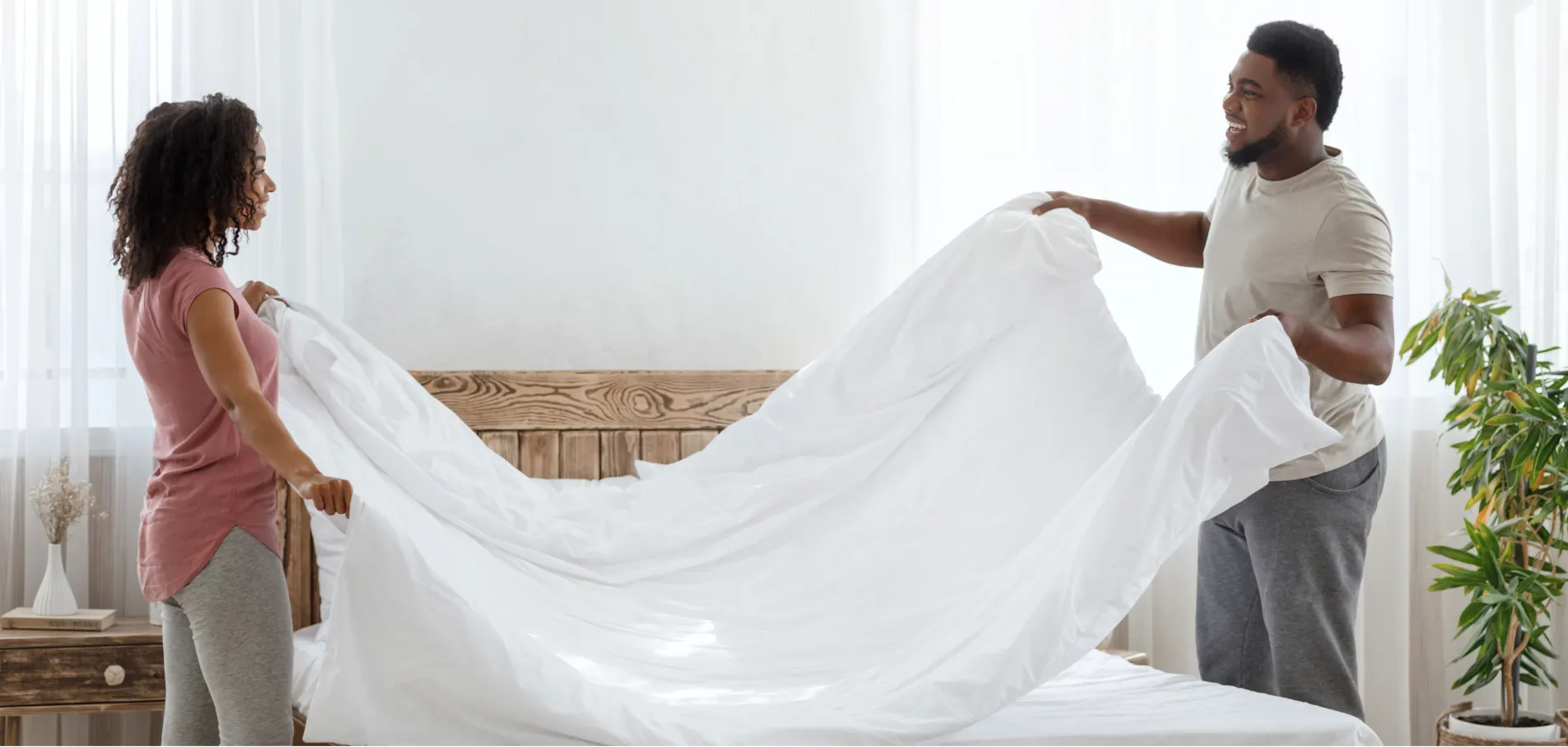 Flat sheets act as a protective layer between you and your top layer (i.e., duvet, comforter, or quilt).