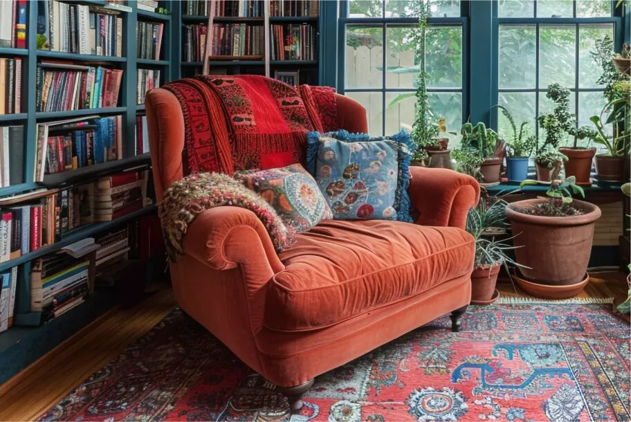 Neutral colors pair well with most decor and include many natural tones such as browns, beiges, and deep greens or blues. Neutral colors will feel restful and unobtrusive, allowing the rest of your decor elements to shine.