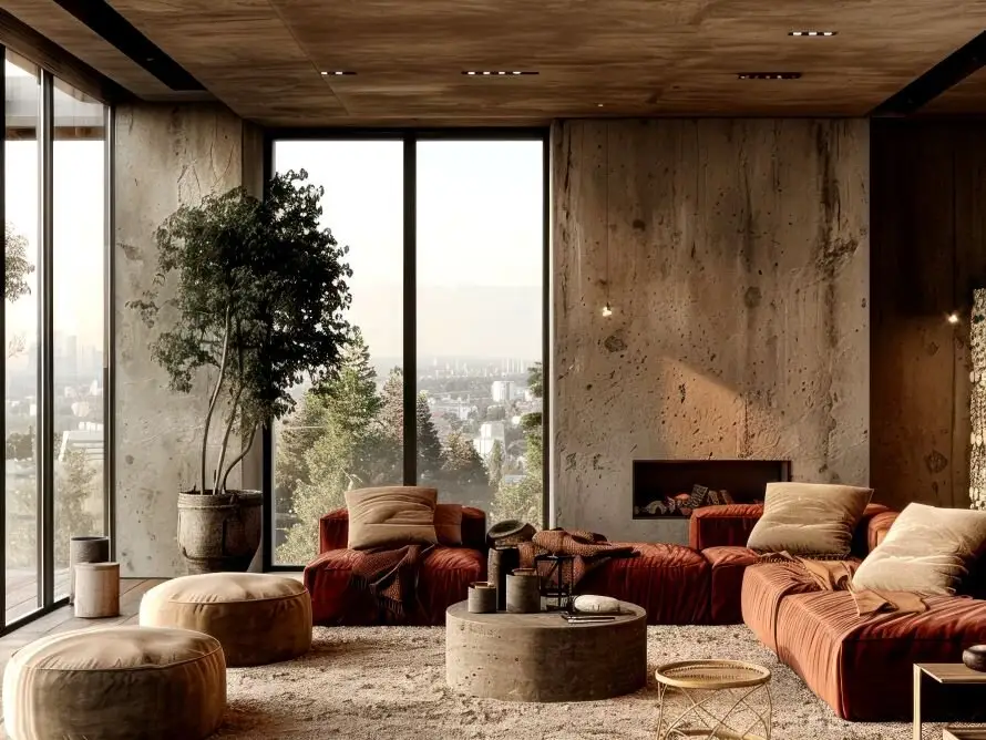 Part of the rustic charm of mountain modern interior design style is its connection to nature. Incorporating natural materials such as wood, clay, and stone evokes the warmth of a cozy farmhouse or an old-fashioned wood cabin. Pair these elements with accents in cotton, fur, or leather to really make the space feel cozy.