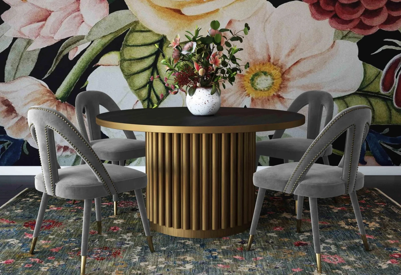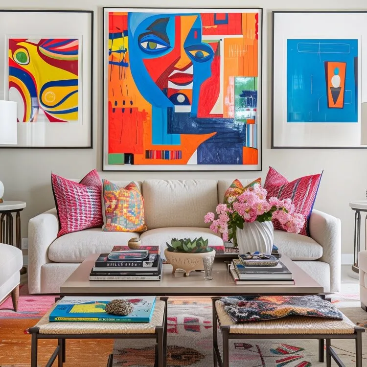 A beloved element of maximalist style is an artful display of curios. And no space is better suited for open shelves than the kitchen. Display tchotchkes, colorful dishware, and kitchen accessories for functional yet stylish storage. You can introduce other thoughtful details like bright cabinets, ornate handles, eye-catching tiles, patterned tablecloths, and vintage dinnerware. And don’t forget the sweeping gestures of large statement pieces. Think mismatched dining chairs and table, showy sideboards or buffets, an oversized patterned rug, vibrant wall art, or a lavish chandelier. These broad strokes are key to creating a room that feels energetic and full of life — without feeling cluttered.