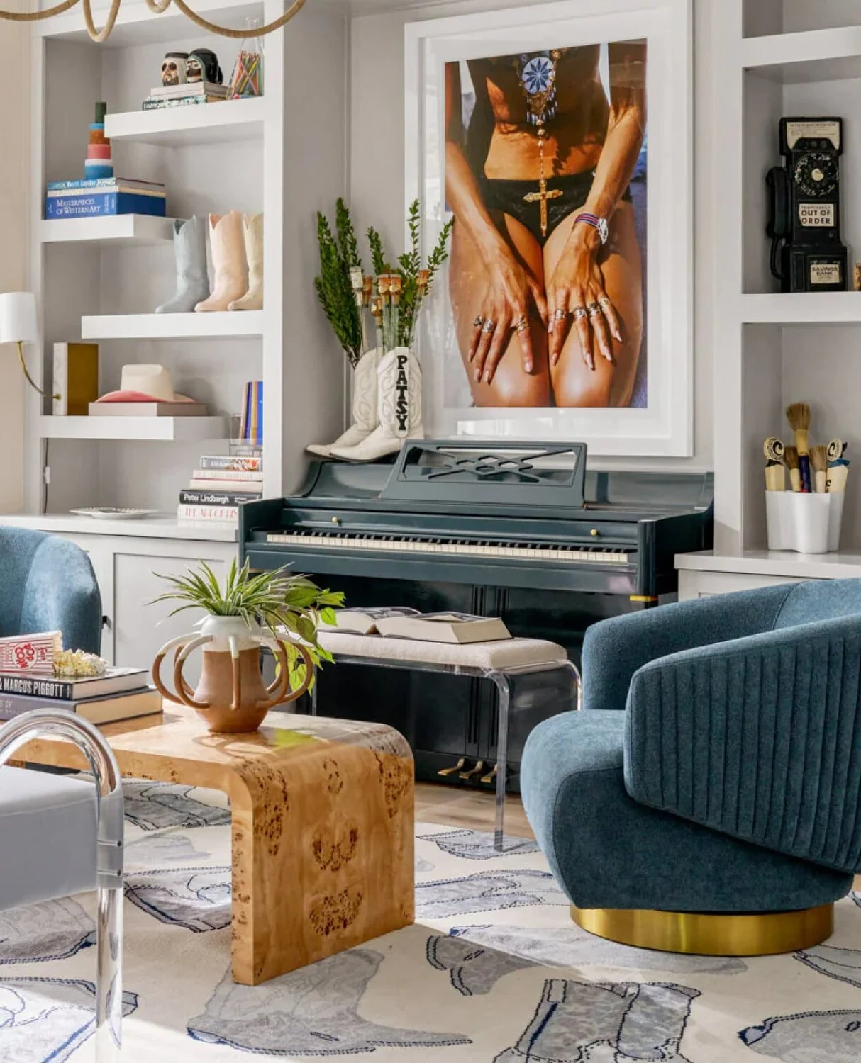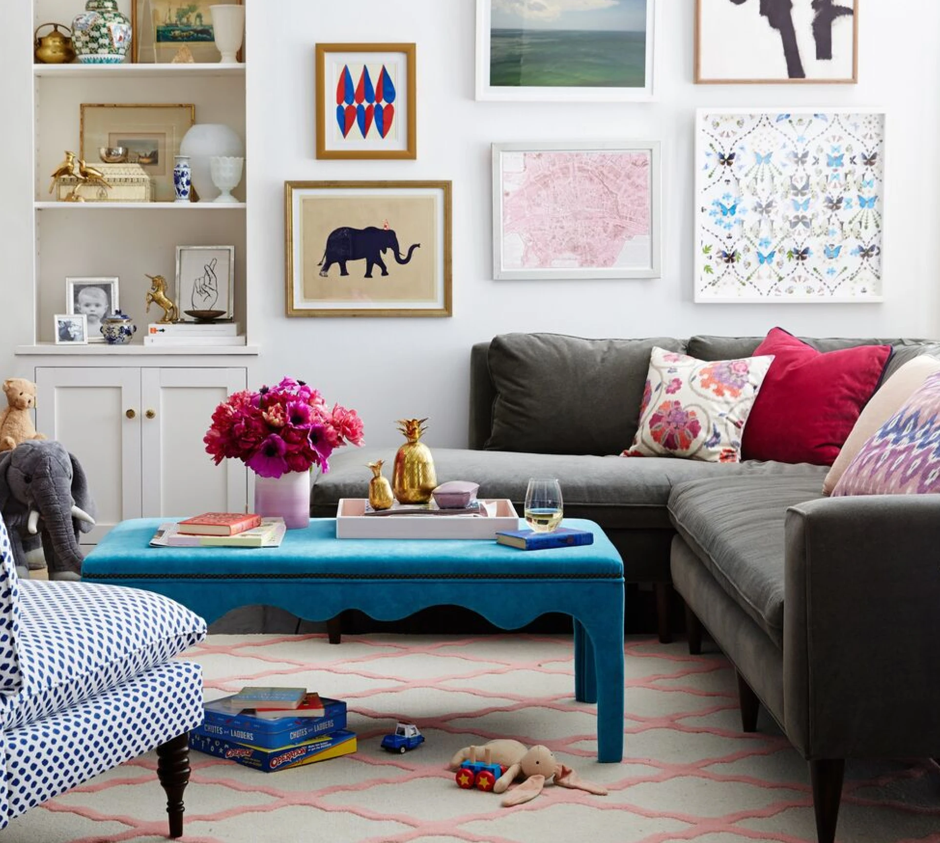 There’s something that feels so authentic about an eclectic mix of furniture and accessories. To ace this hand-curated look, start with a few bold-colored furnishings as a foundation. As you add in more pieces, focus on adding depth and interest through patterns, colors, and textures that still share some defining element. For example, pair a velvet tufted sofa and a brightly patterned mid century modern lounge chair that both sport a curvy silhouette. This ensures there’s a bit of cohesion and balance. Then add a coffee table that eschews the usual solid-wood design with glitzy bronze, elegant marble, iridescent acrylic, or boho chic rattan.