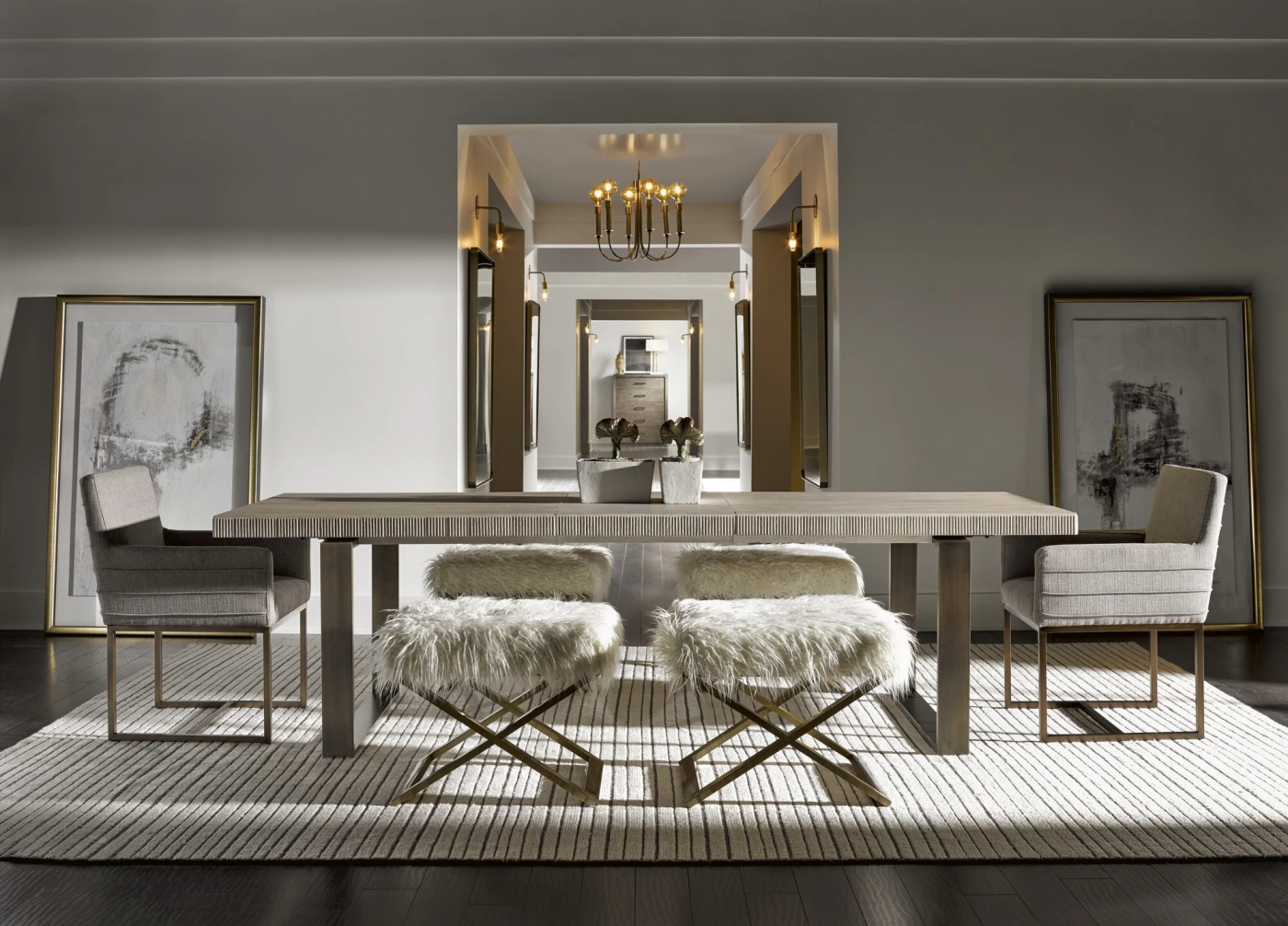 Simplicity can be deeply elegant. Choose a streamlined dining table, keep accessories minimal, and let a single piece of art or a sculptural vase serve as your focal point.