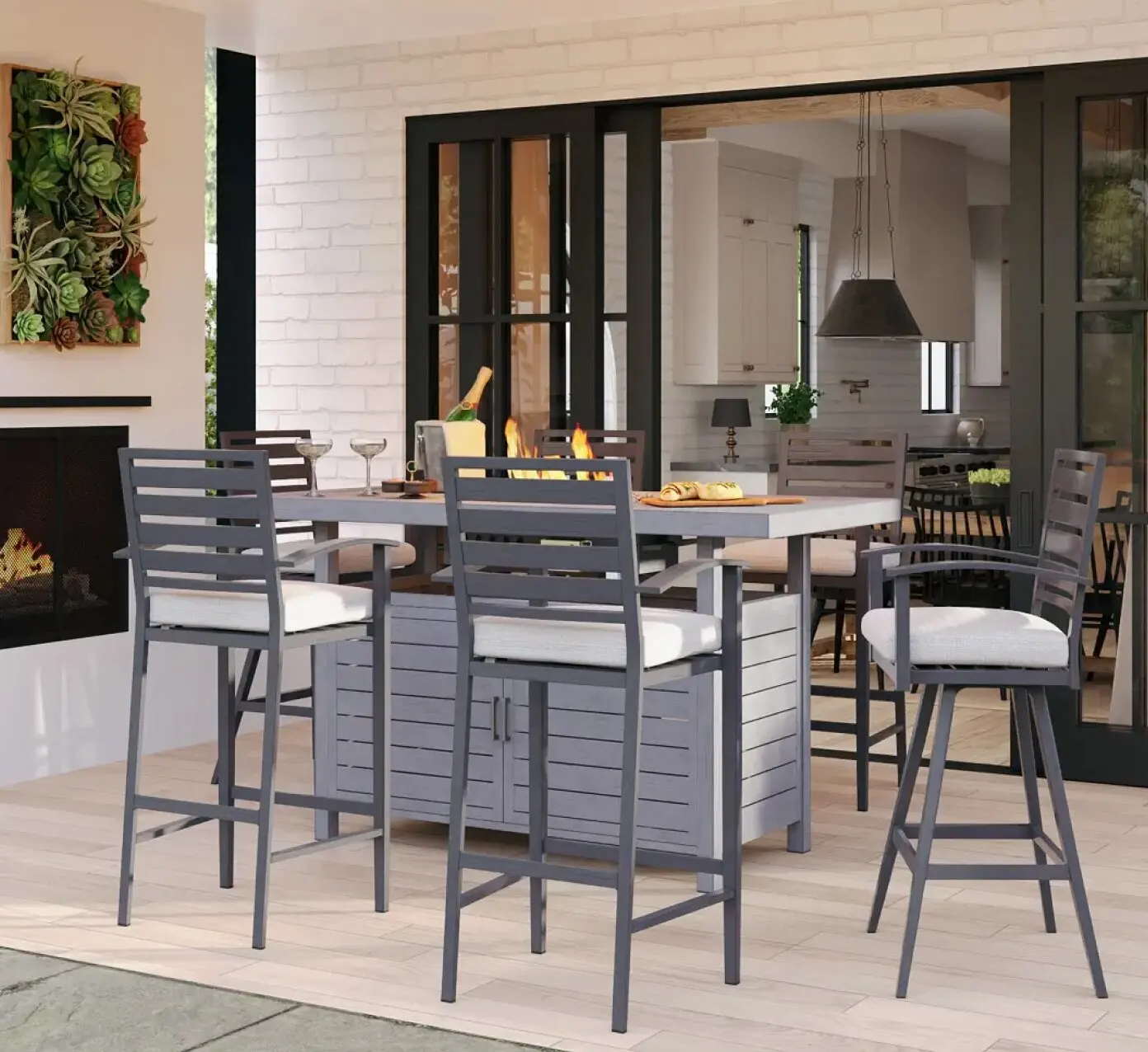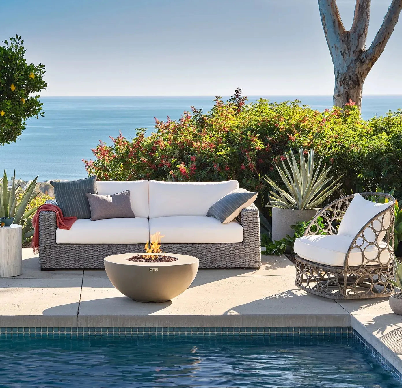 The perfect look for anyone looking to maximize time outside, the beach house style is all about breezy, relaxed comfort. Load up on amenities like outdoor umbrellas, padded chaises, and maybe even a bar cart to complete the vacation atmosphere. As for style, we recommend furniture made of wicker or light-colored wood, with clean and nautical colors for accessories.