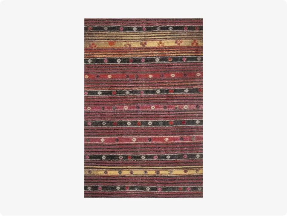 Bohemian enthusiasts prefer an eclectic, maximalist vibe. A woven or fringed rug in earthy tones gives off a cozy, effortless feel that fits in with wicker furniture and hanging plants.