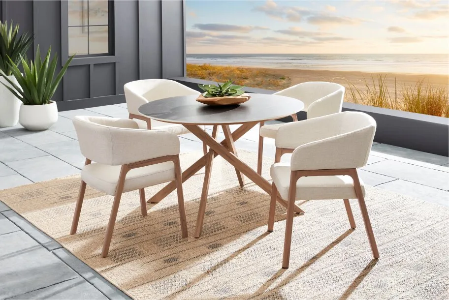 Metal furniture also holds up well against the sun, rain, and other weather conditions. The most durable yet lightweight materials include aluminum or galvanized steel. Choose a metal dining set for effortless outdoor entertaining. Group metal chairs together or add a metal bench for extra seating.