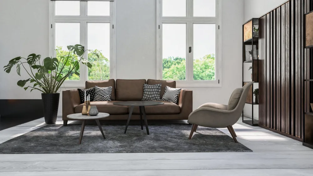 For a modern or contemporary aesthetic, focus on clean lines that complement the minimalist furniture. Wood, stone, marble, concrete, or even metal should be your go-to materials, focusing on black, white, and gray tones.