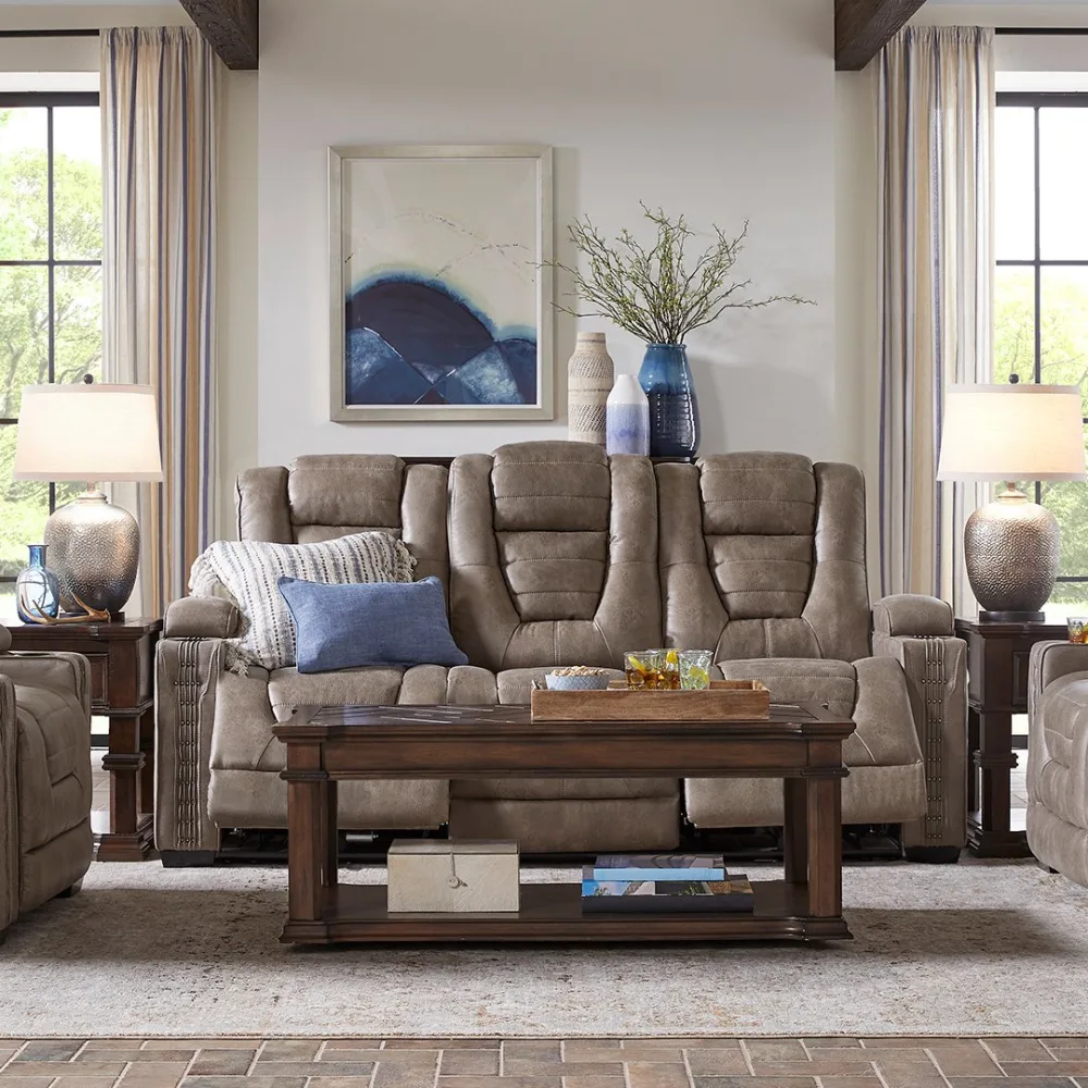 Optimize for comfort and style with plush seating. Transitional style blends the comfort found in traditional designs with the sophisticated look of a modern design. Try neutral fabric looks to achieve this balance.