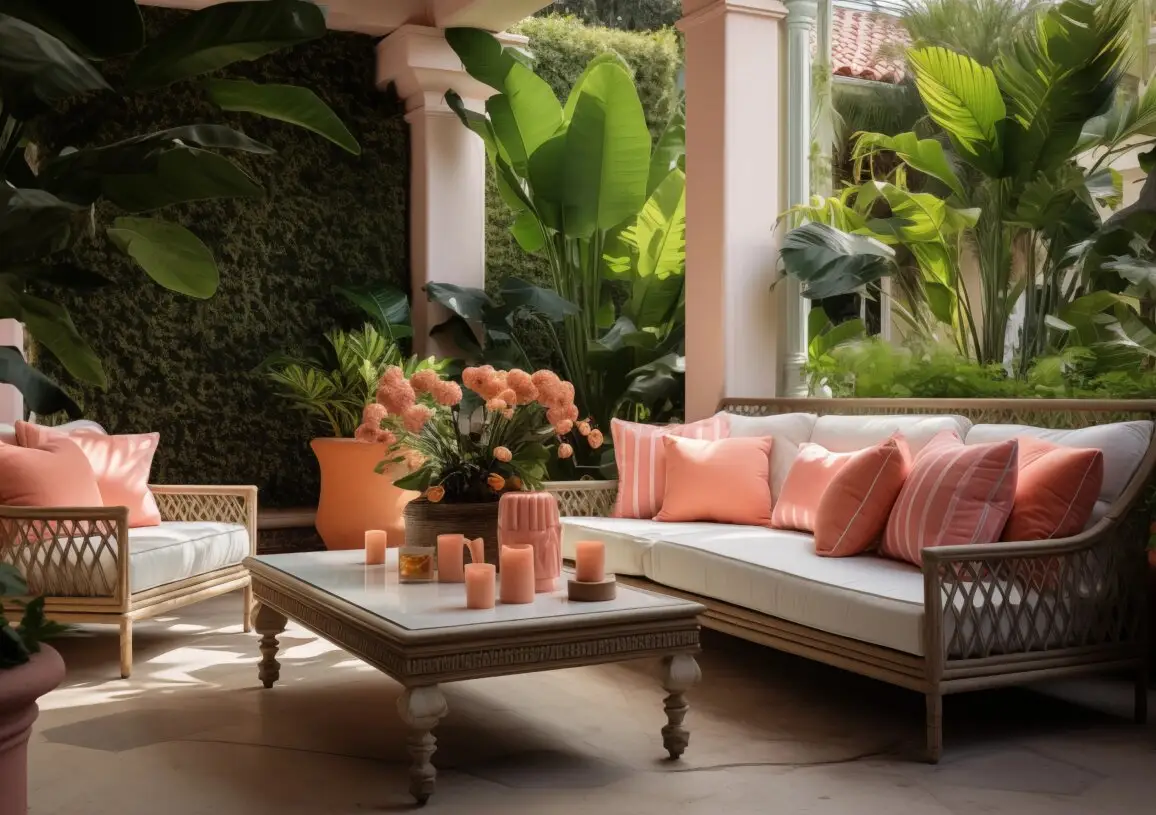 Mid century modern silhouettes meet tropical glam for the must-have interior style of the summer. Escape to a regal paradise of rattan, palm fronds, and ornate gold accents.