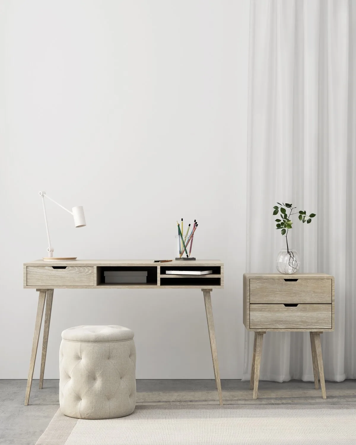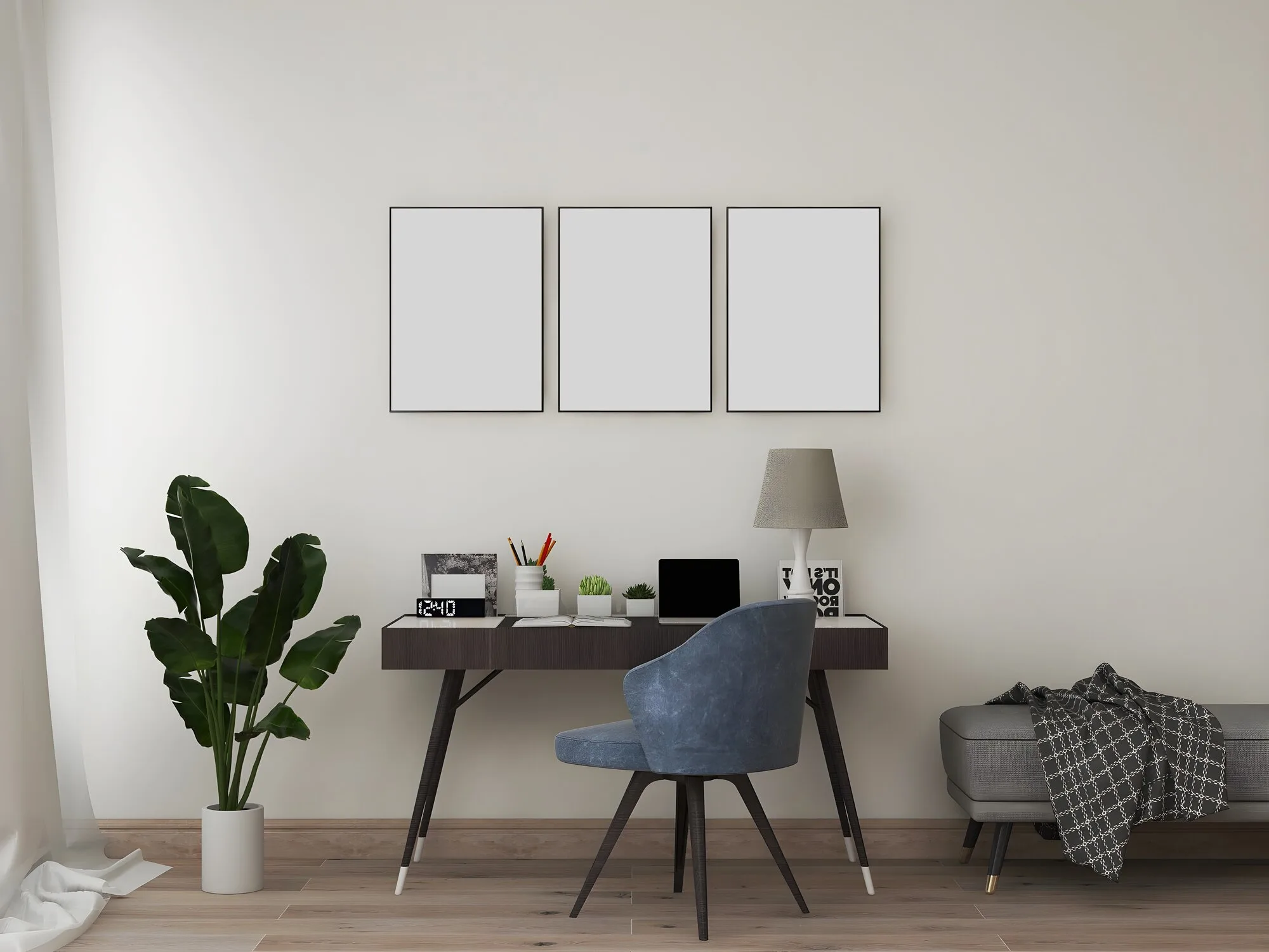 Place a tall plant at the end of your desk as a focal point.