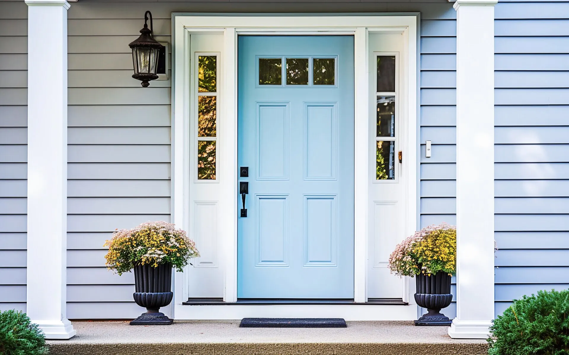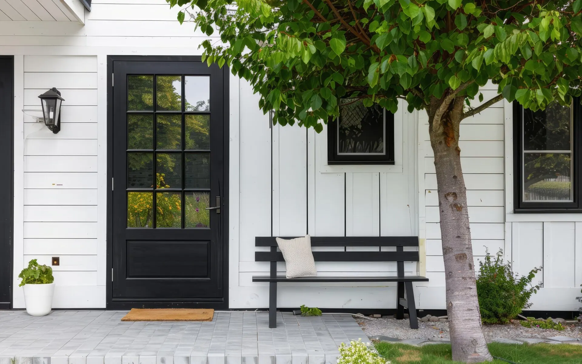 Most homes come with a standard-issue door with a drab color scheme. You can increase your home’s curb appeal by making the door a stunning focal point with a solid hue. Consider black against a brick home, or a bold red or blue against a white or grey exterior.