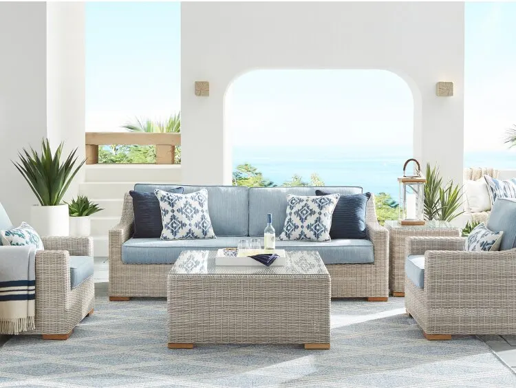 Light-toned wood, wicker, rattan, and upholstered pieces in neutral or soft colors work beautifully in summer. Consider multi-functional furniture that can transition between indoor and outdoor use.