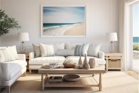 Absolutely. Embrace natural light as much as possible. Consider swapping heavy drapes for sheer curtains and using light-toned lampshades or lanterns to maintain a soft, breezy ambiance in the evenings.