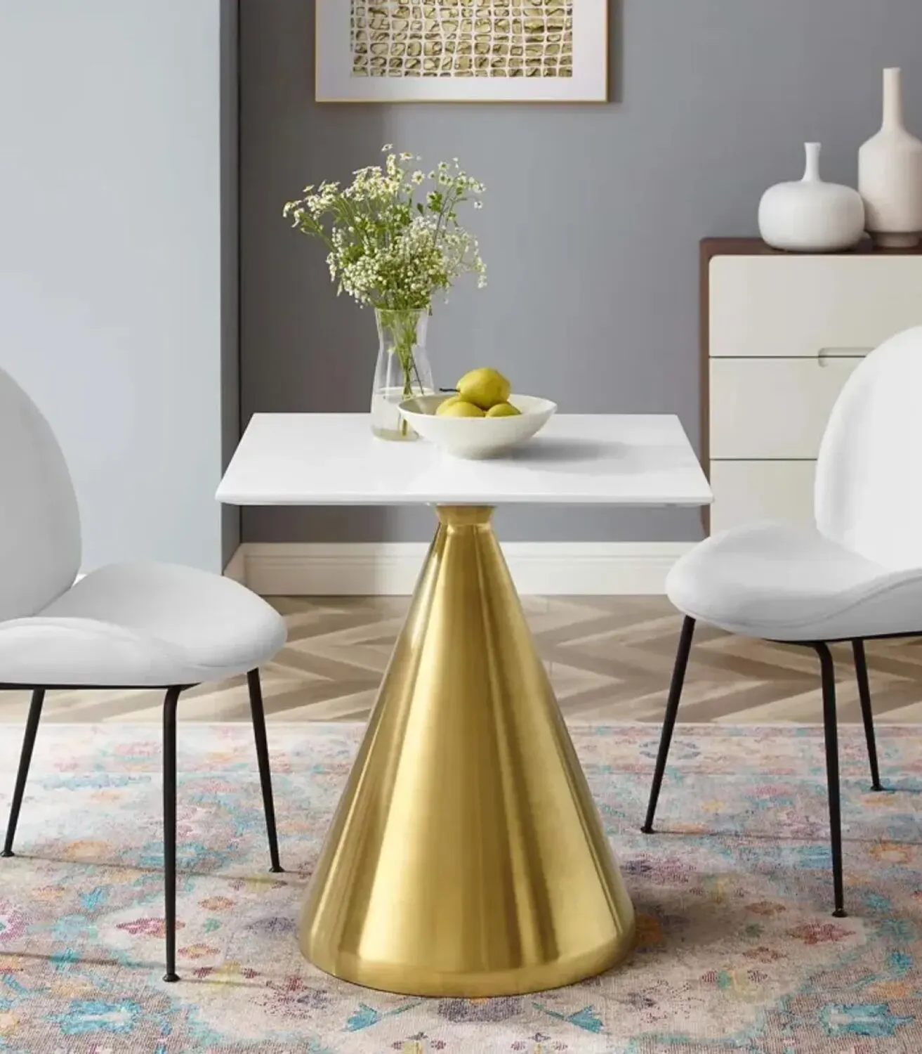 Square dining tables have four equal sides and typically seat four people. Larger ones may accommodate up to eight, with two people on each side. Because the seats are equidistant at a square table, this setup is often good for friendly conversation, important discussions, or even board and card games.