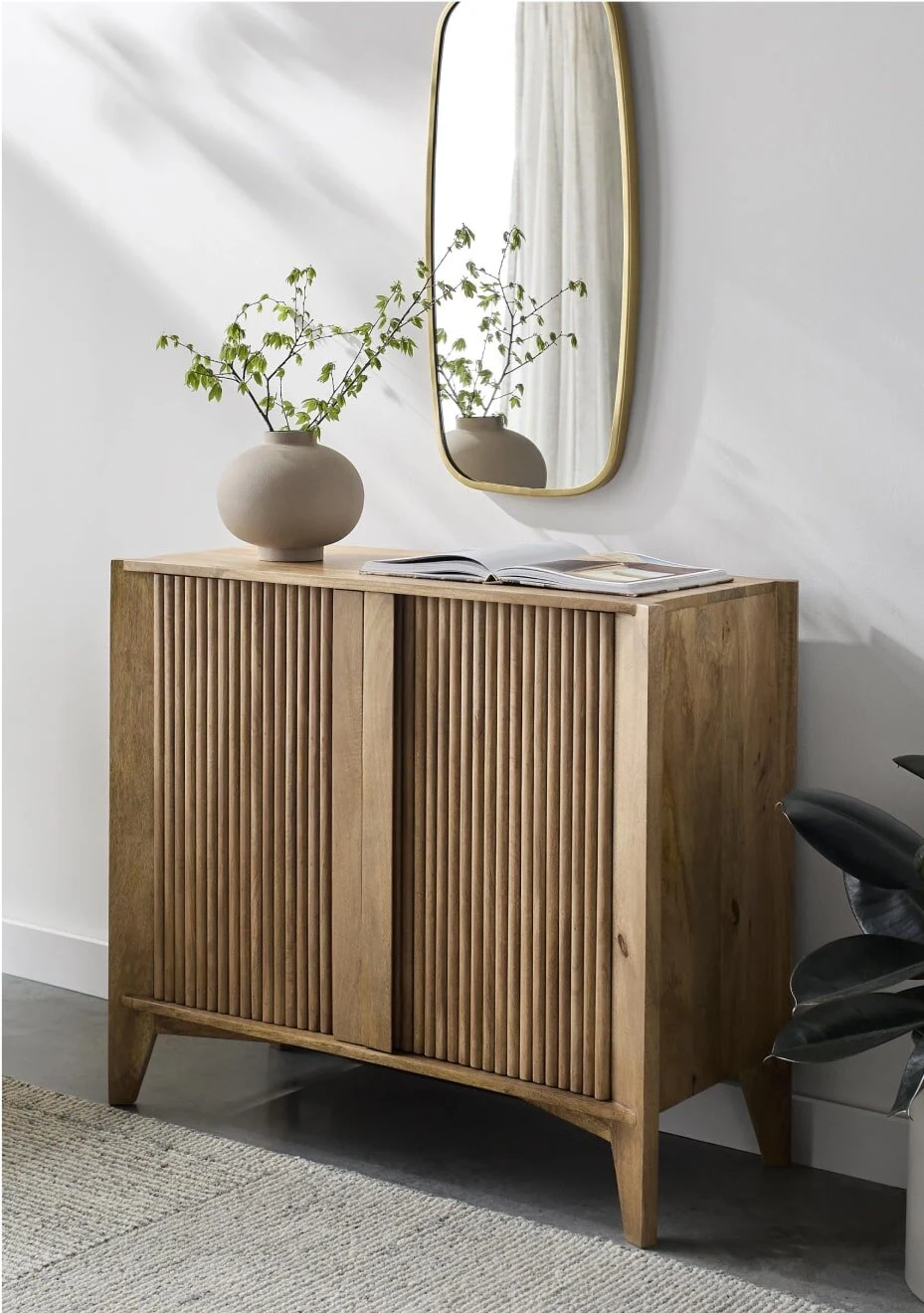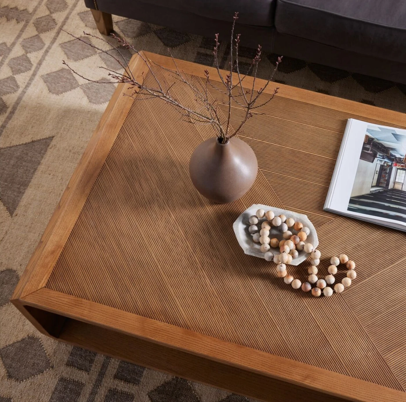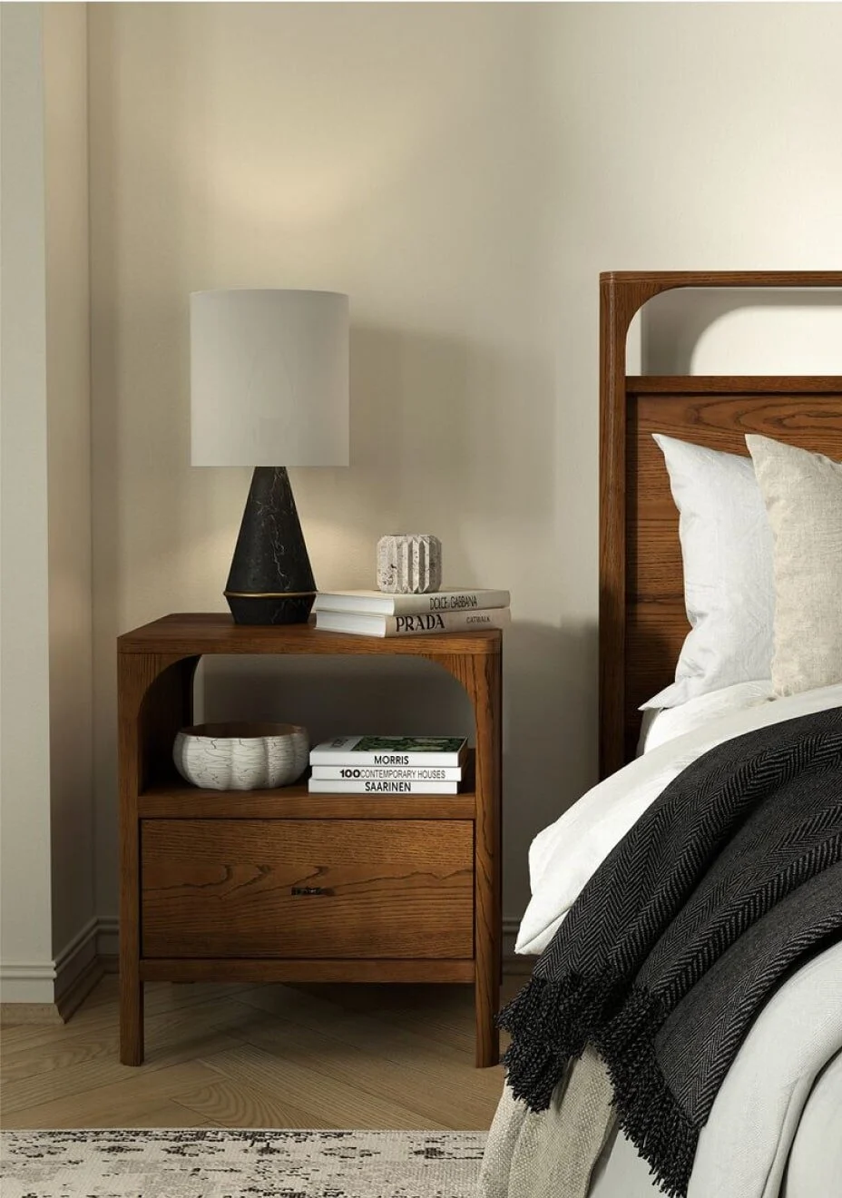 Though wood is a classic material that works year-round, it’s particularly coveted in the wintertime. To dial up its natural warmth, look for finishes with warm, orange, and honey undertones instead of charcoal, ash, or slate tints. Pepper warm wood throughout your home for rustic country charm or Scandinavian modern vibes with oak accent tables, walnut dressers, cherry wood bowls, and more.