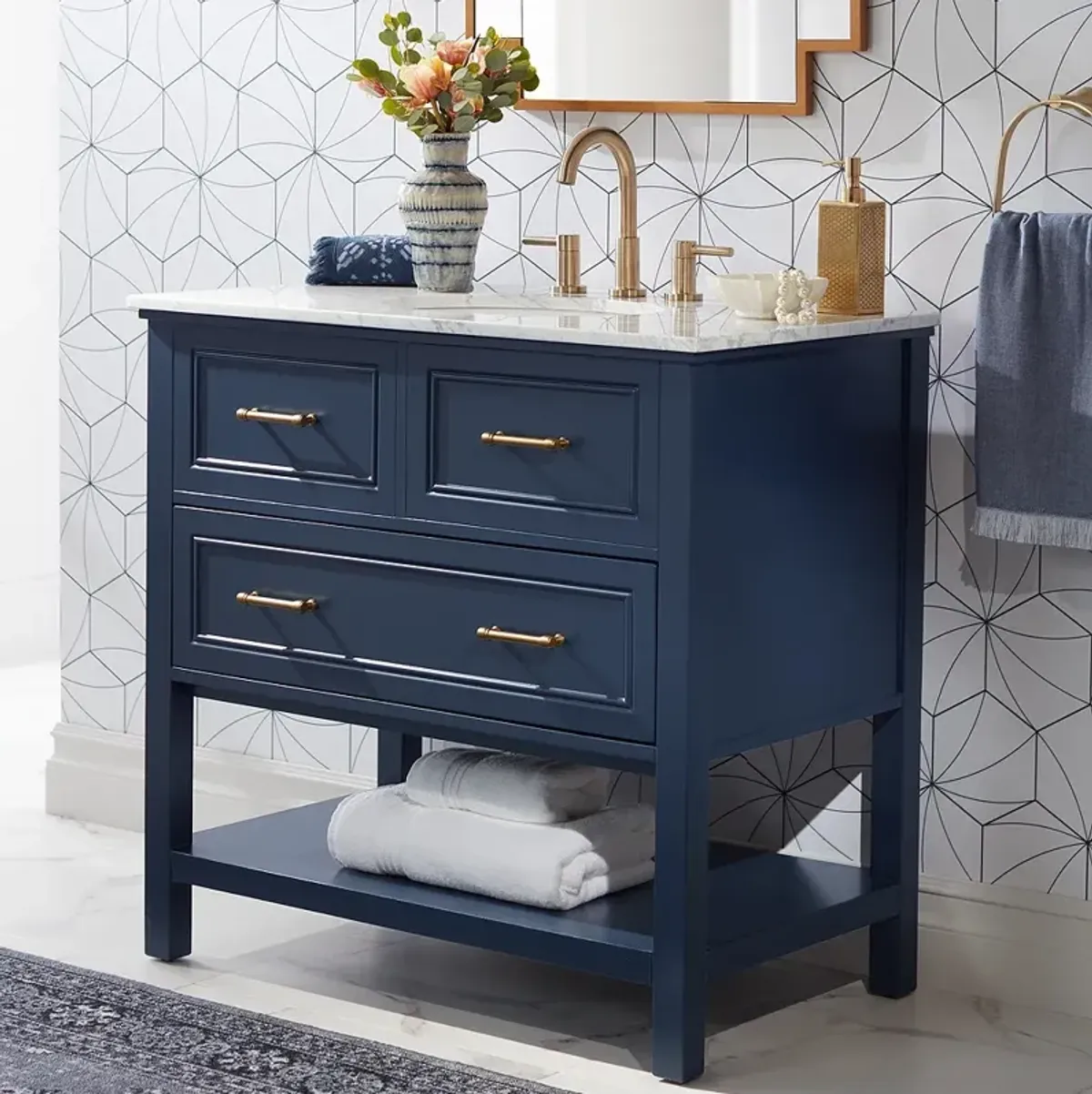 Bruce 36 1/4" Wide 1-Drawer Blue Teak Wood Single Sink Vanity