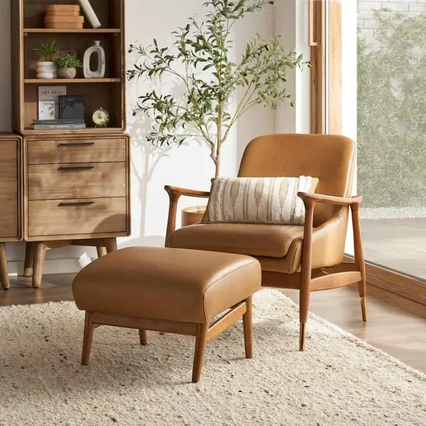 Desmond Armchair with Ottoman, Caramel