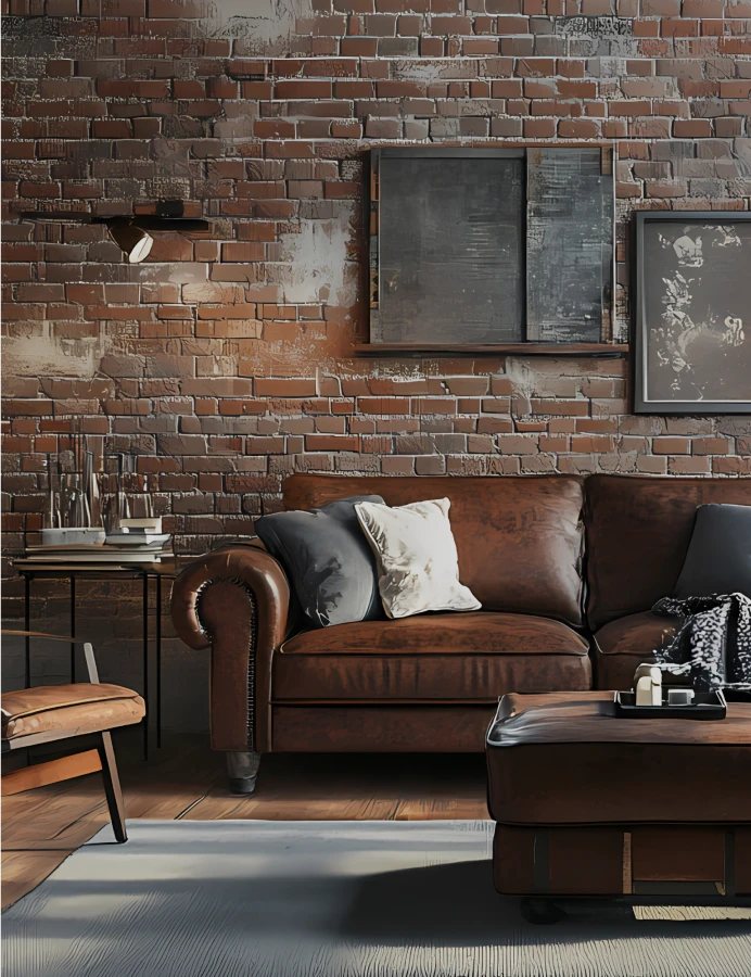 Soft, distressed leather adds warmth and character to Industrial spaces. It’s perfect for anchoring the room with comfort and a little edge.