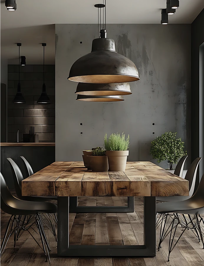 Details matter—especially in this style. Iron frames, steel fixtures, and black hardware bring bold contrast and pull the whole look together.