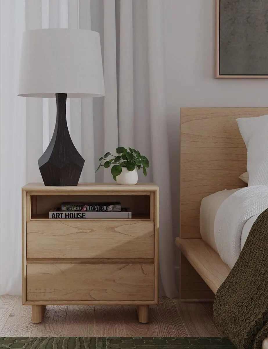 Low-profile beds make you feel more grounded and look neat and simple. Neutral dressers provide a way to clear up clutter and keep a low profile. Pair these bedroom stales with a clean-lined nightstand in a natural material to tie the room together.