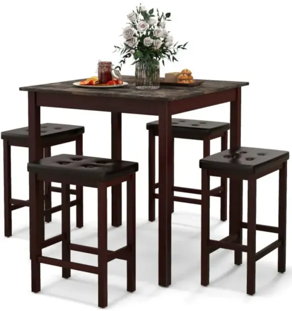 5-Piece Bar Table Set Counter-Height Dining Table and 4 Bar Stools