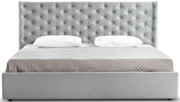 Casabianca Home Parker Queen Storage Bed In Gray Velvet Fabric