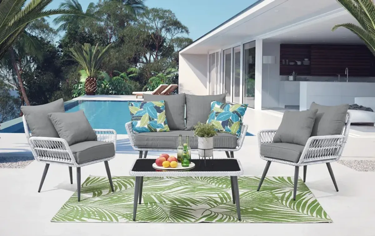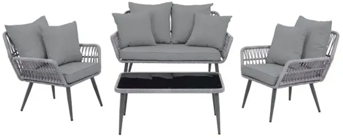 3 Pieces Patio Rattan Conversation Sets with Cushioned Sofas and Wood Table Top