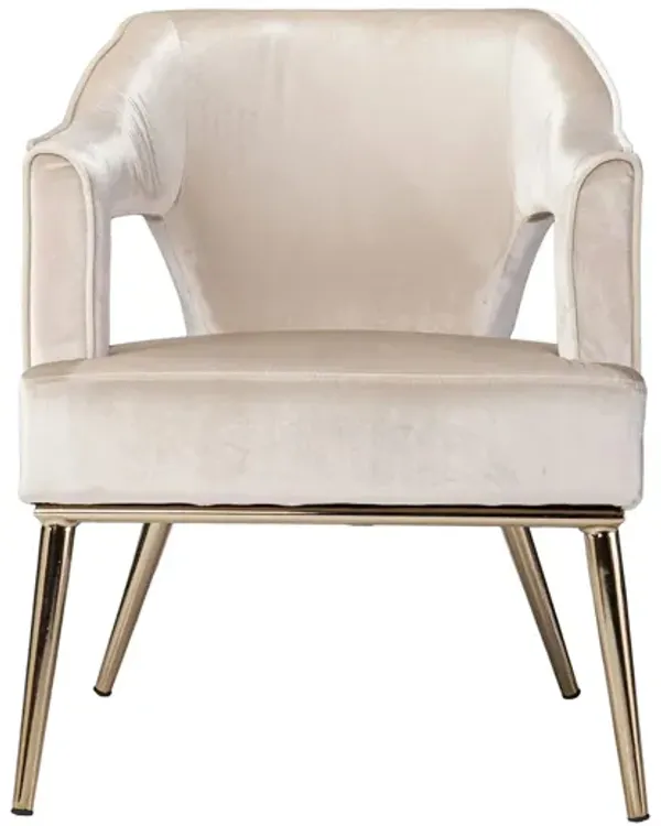 Cream Velvet Accent Chair in Gold
