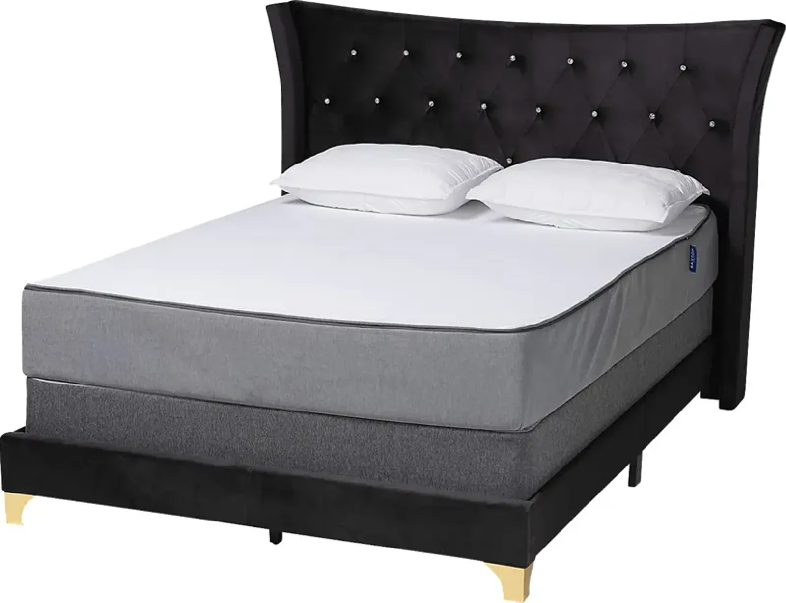 Baxton Studio Abberton Modern Black Velvet Gold Metal Queen Size Panel Bed