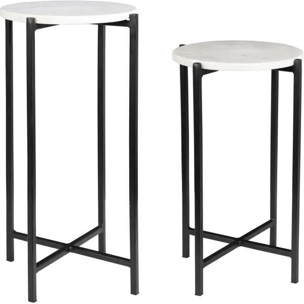 Kyler Set of 2 Drink Tables - White Marble/Matte Black