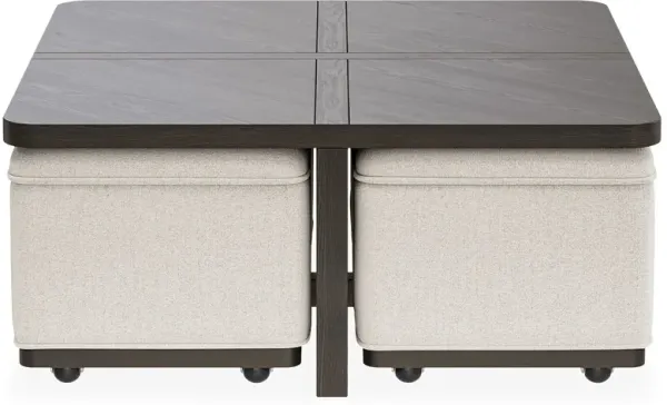 Bremen Charcoal Cocktail Table with Four Ottomans