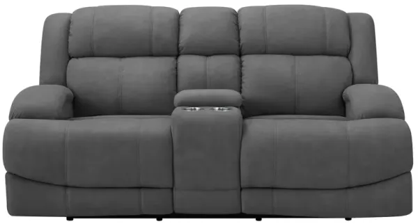 Apollo Blue Grey Leather Power Reclining  Loveseat with Headrest
