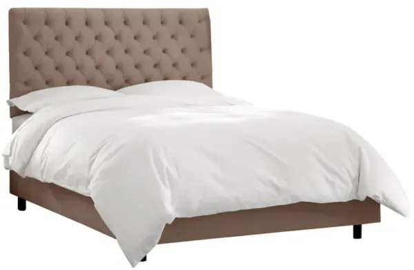 Sophia Velvet Wingback Bed - Handcrafted - Beige, Mattress, Box Spring Required