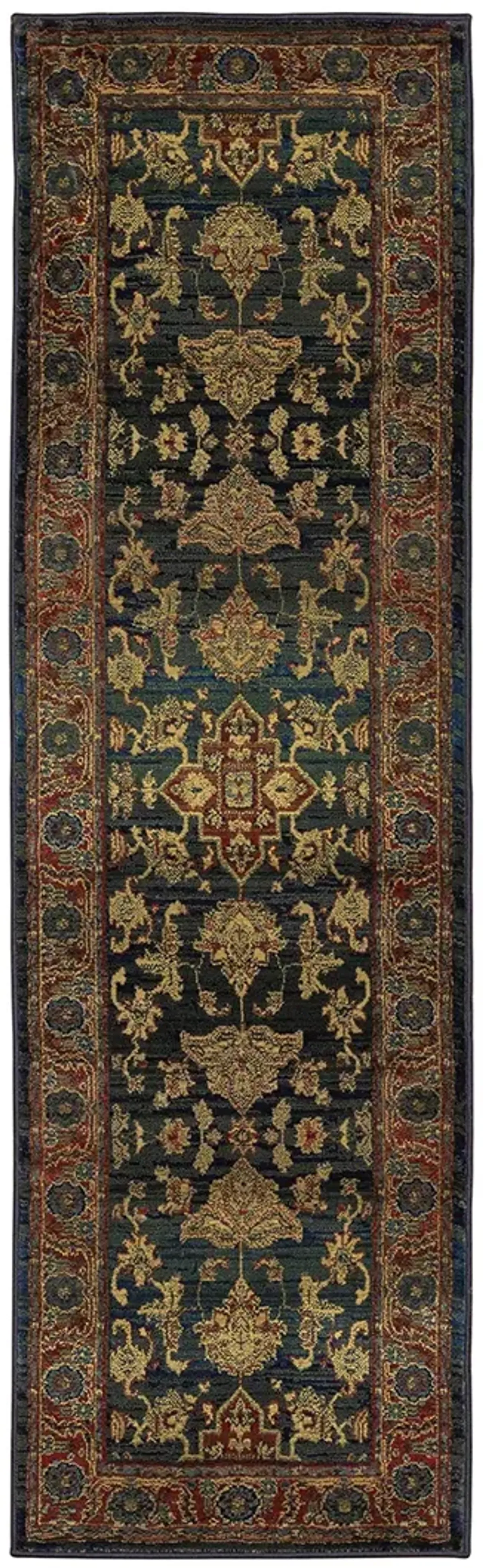 8' Oriental Power Loom Runner Rug - Blue And Green