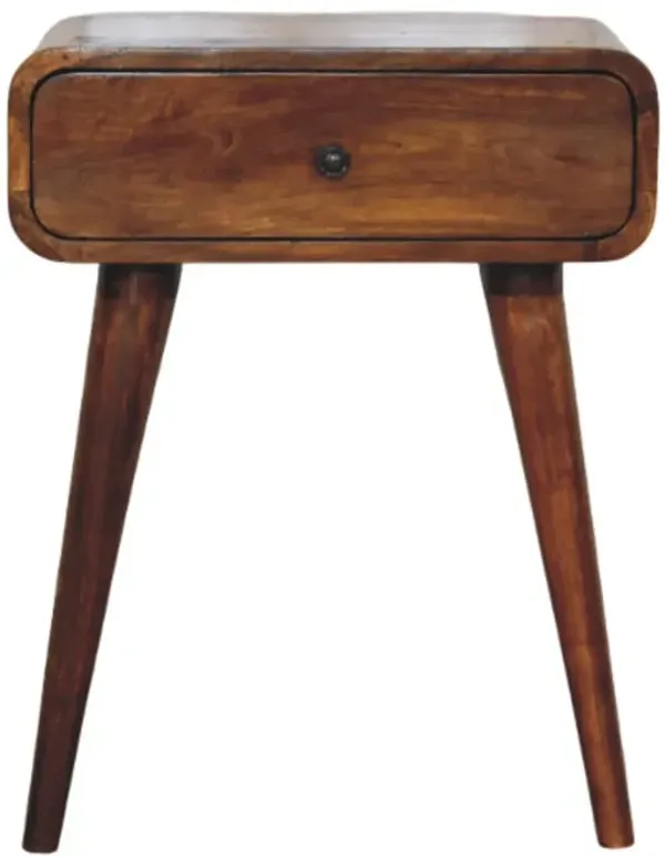 Mini Chestnut Curved 1 Drawer Nightstand  with Open Slot