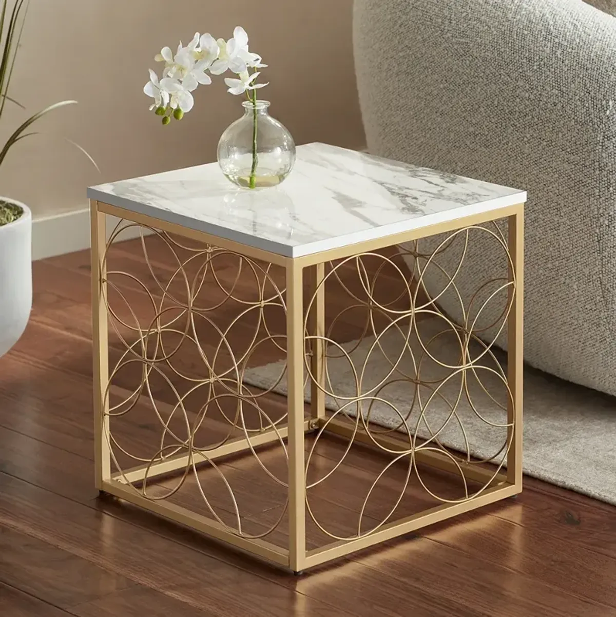 Carolina Living Piuma Marble Top Accent Table - White Top - Antique Gold Base