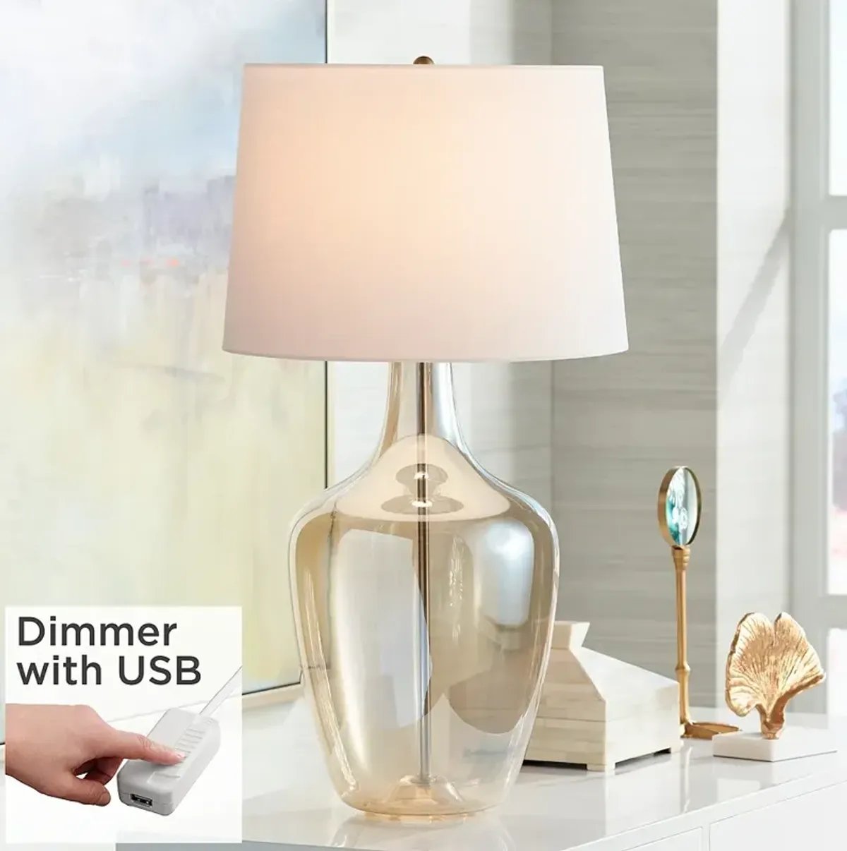 Possini Euro Ania 31" Champagne Glass Jar Table Lamp with USB Dimmer