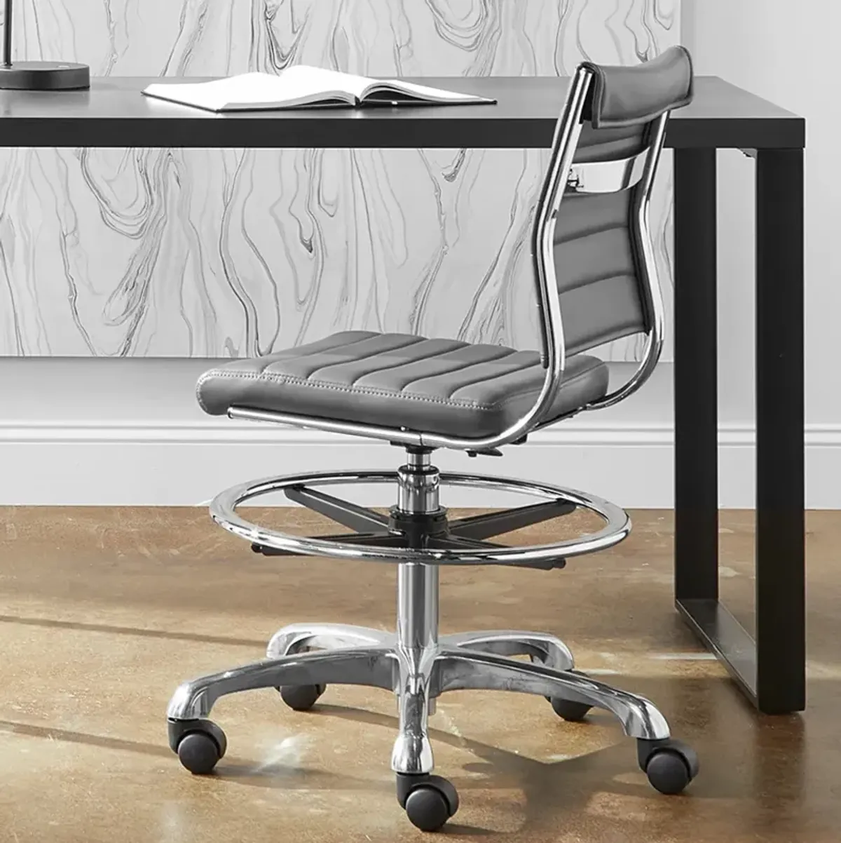 Axel Gray Leatherette Adjustable Swivel Drafting Stool