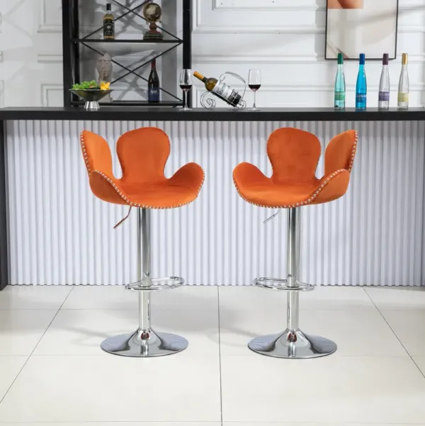 Velvet Bar Chair, Pure Gold Plated, Unique Design, 360 Degree Height