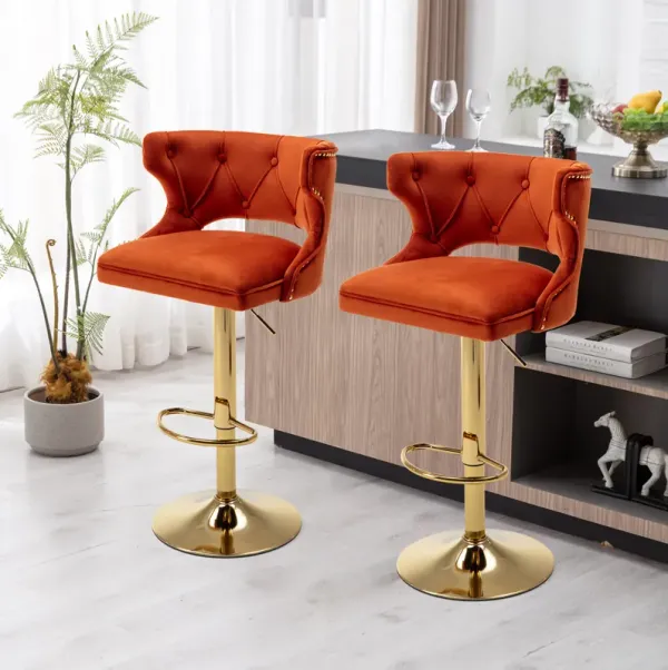 Streamdale Velvet Orange Counter-Height Bar Stools with Back and Footrest (Set of 2)