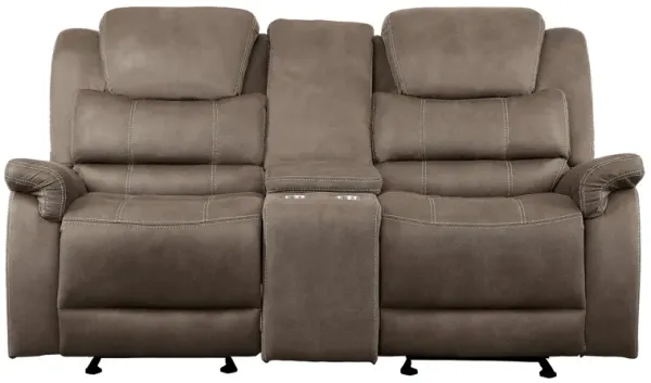 BAXTER TAUPE RECLINING LOVESEAT WITH CONSOLE