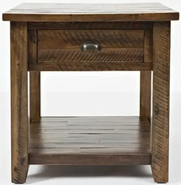 Jofran Telluride Rustic Farmhouse Solid Wood End Table with Storage